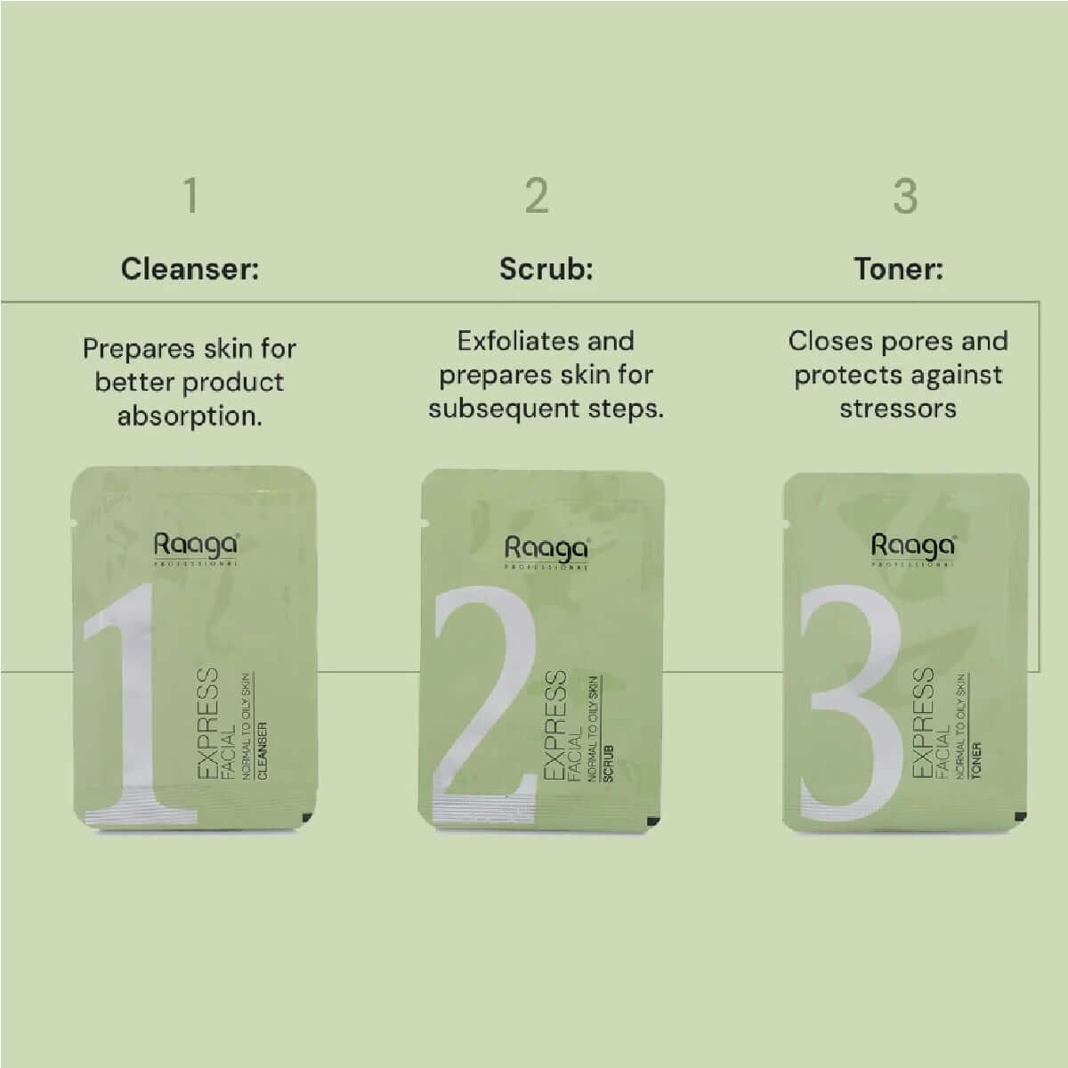 Raaga Express Facial Kit (6 Step Process) Rejuvenates and Revitalises Skin, Improves Skin Texture | Normal To Oily Skin | Pack of 6 (35g X 6)